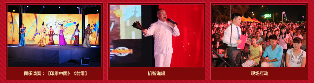 7月19日晚19:30分,由廊坊市文化廣電新聞出版局、廊坊市工商業(yè)聯(lián)合會主辦的2014“歡樂城鄉(xiāng) 文化惠民”民企之聲文藝晚會在新華路京客隆廣場盛大開幕。7月19日至9月21日期間每周六、日晚,主辦單位均選擇一家較有實力的民營企業(yè)承辦活動,以各承辦單位自編自演的節(jié)目為主,通過歌曲、舞蹈、相聲、小品等演藝形式展示企業(yè)風(fēng)采。
