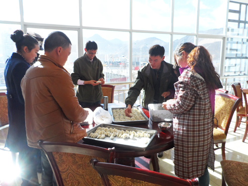 “我為大家包餃子”活動名稱,正體現(xiàn)了十一局拉薩員工相互關(guān)心、相互照顧的融洽工作氛圍。員工輪流到食堂為大家包餃子,場面異常熱烈,其樂融融。等待熱騰騰餃子出爐的時間里,所有員工圍在大蛋糕前,為12月份過生日的同事送上祝福并獻(xiàn)唱生日歌。