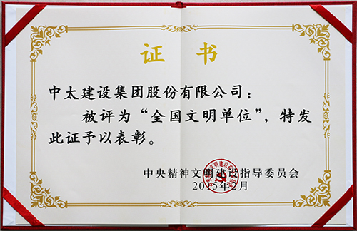 中太建設集團榮膺“全國文明單位”稱號