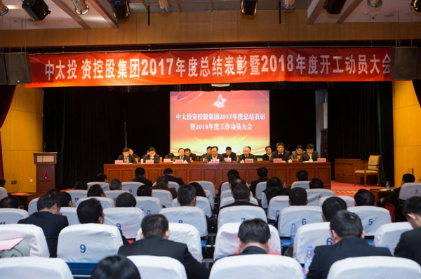 2018年3月5日8時28分,中太大廈報告廳,300多名中太員工著裝整齊,精神煥發,中太投資控股集團2017年總結表彰暨2018年開工動員大會勝利召開。董事局主席李文健作重要講話,總裁燕振義作主題報告,大會由監事會主席吉士俊主持。