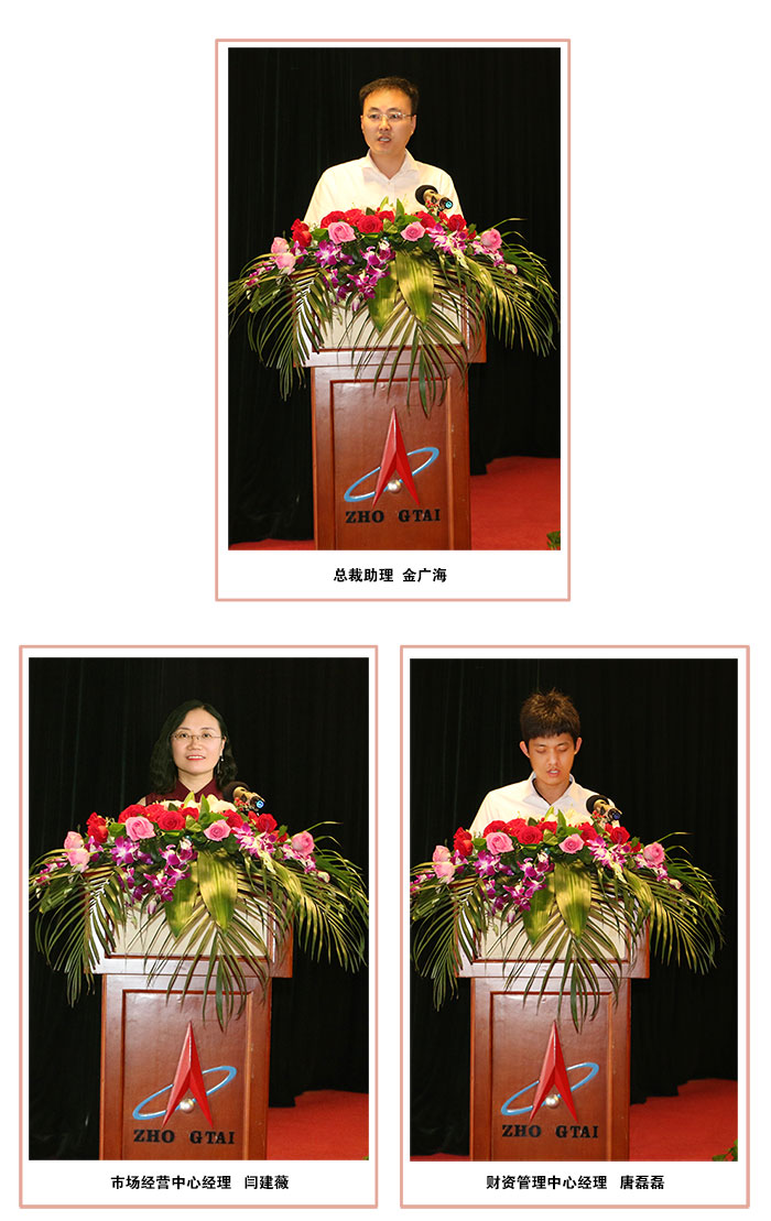總裁助理金廣海同志做企業(yè)經(jīng)營及市場拓展報(bào)告;建設(shè)集團(tuán)市場經(jīng)營中心經(jīng)理閆建薇;財(cái)務(wù)資金中心經(jīng)理唐磊磊分別做了表態(tài)發(fā)言。