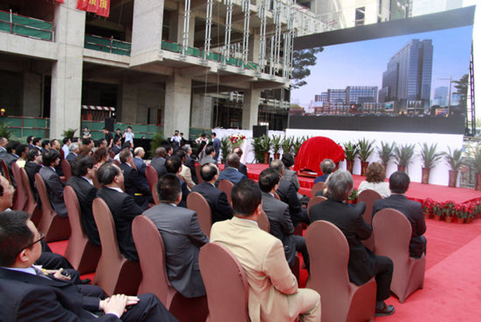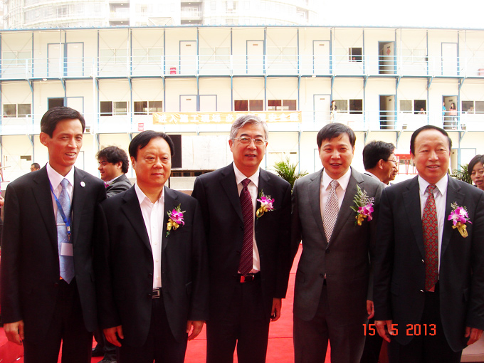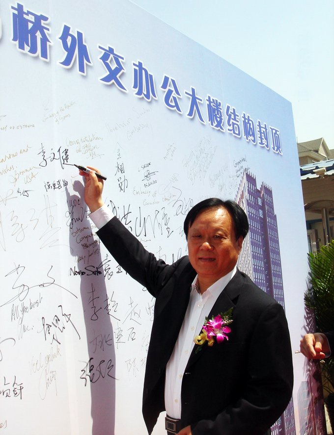 建設(shè)部、外交部、北京市建委、北京外交人員服務(wù)局等領(lǐng)導、阿根廷駐華大使、集團董事局主席李文健啟動結(jié)構(gòu)封頂儀式