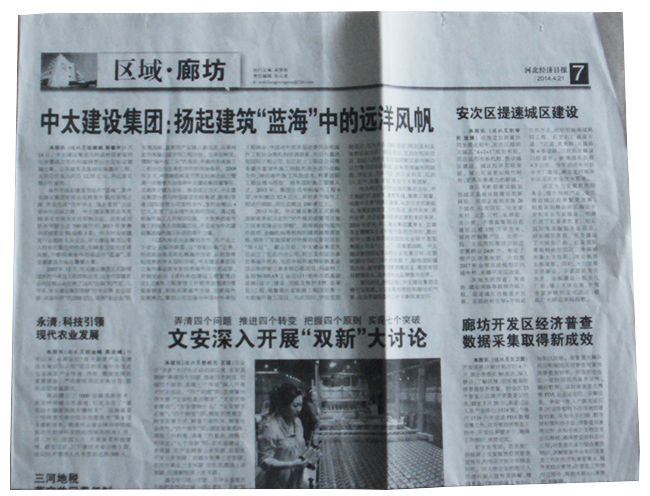 河北經(jīng)濟(jì)日?qǐng)?bào)報(bào)道了中太建設(shè)集團(tuán):揚(yáng)起建筑“藍(lán)!敝械倪h(yuǎn)洋風(fēng)帆