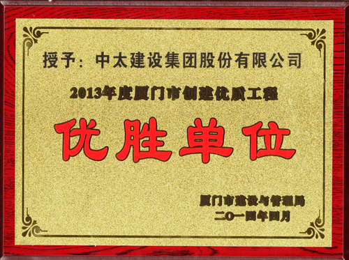 近日,中太建設(shè)集團榮獲2013年度“廈門市創(chuàng)建安全文明工地優(yōu)勝單位”、“廈門市建設(shè)工程質(zhì)量安全生產(chǎn)文明施工先進單位”、“廈門市創(chuàng)建優(yōu)質(zhì)工程優(yōu)勝單位。何波、曹仰高被評為先進個人。(第九工程局)