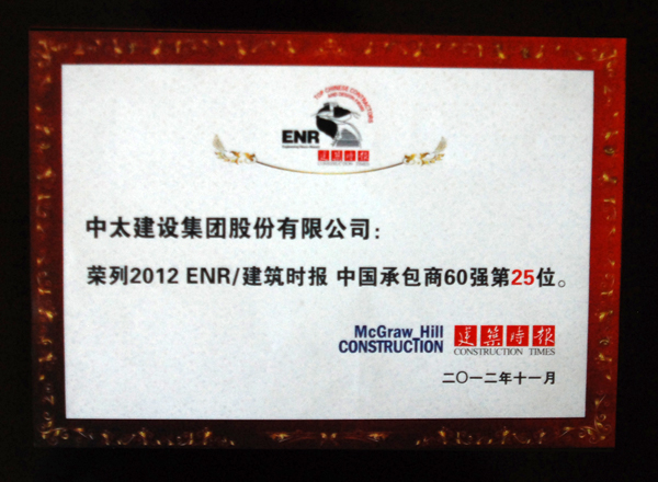 建筑時(shí)報(bào) 中國(guó)承包商60強(qiáng)第25位