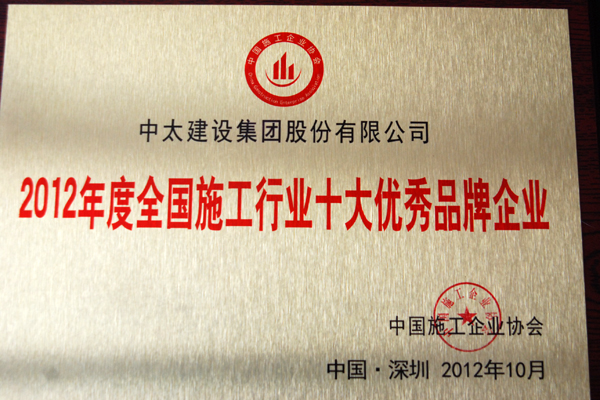 2012年度全國(guó)施工行業(yè)十大優(yōu)秀品牌企業(yè)