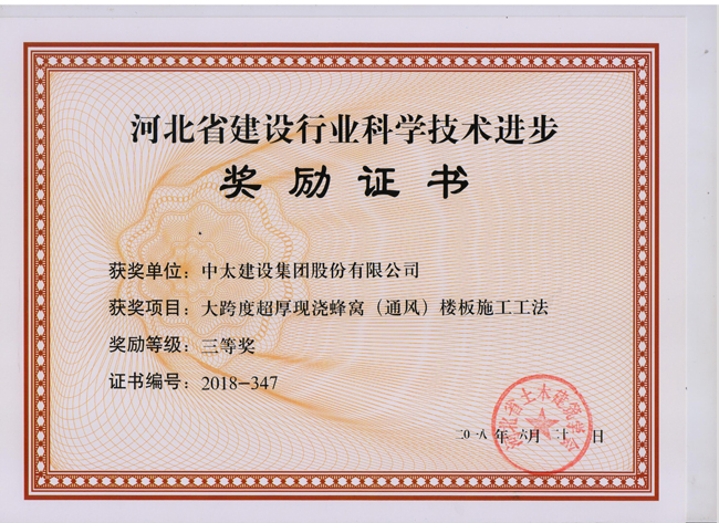 2018年河北省建設(shè)行業(yè)科學(xué)技術(shù)進(jìn)步獎(jiǎng)勵(lì)證書匯總